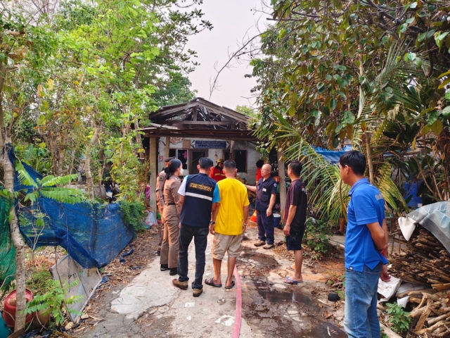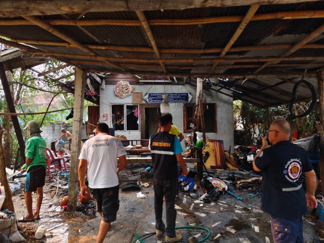 ที่เกิดเหตุเป็นบ้านปูนชั้นเดียว สภาพความเสียหายหนัก กระเบื้องหลังคาแตกกระจัดกระจาย บางส่วนยังมีเปลวไฟลุกไหม้ เจ้าหน้าที่ต้องระดมฉีดน้ำสกัดเพลิง ก่อนสามารถควบคุมสถานการณ์ไว้ได้ ตรวจสอบพบผู้บาดเจ็บ 2 ราย เป็นชาย 1 ราย และหญิง 1 ราย มีบาดแผลไฟไหม้ตามร่างกาย โดยมีพลเมืองดีช่วยนำส่งโรงพยาบาลแม่ใจไปก่อนหน้า