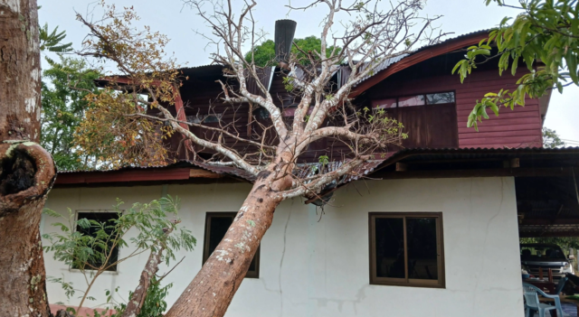 นอกจากนี้ ยังมีต้นไม้ขนาดใหญ่ รวมถึงเสาไฟฟ้าหักโค่น หลายจุด ส่งผลกระทบไฟฟ้าดับหลายหมู่บ้าน ทั้งนี้ ว่าที่พันตรี อดิศักดิ์ น้อยสุวรรณ์ ผวจ.นครพนม ได้ลงพื้นที่ ประสานหน่วยงานเกี่ยวข้อง องค์กรปกครองส่วนท้องถิ่น ผู้นำชุมชน เร่งสำรวจ ให้การช่วยเหลือฟื้นฟู พร้อมประสานหน่วยงานเกี่ยวข้อง จัดสรรงบประมาณ เข้าไปสนับสนุนช่วยเหลือ ซื้อวัสดุซ่อมแซม บางหลังคาเรือนได้รับความเสียหายหนักต้องใช้งบประมาณซ่อมแซมมากกว่า 50,000 บาท และประกาศแจ้งเตือนเฝ้าระวัง ช่วงนี้มีโอกาสเกิดพายุฤดูร้อนถล่ม ซ้ำเนื่องอากาศร้อนจัด