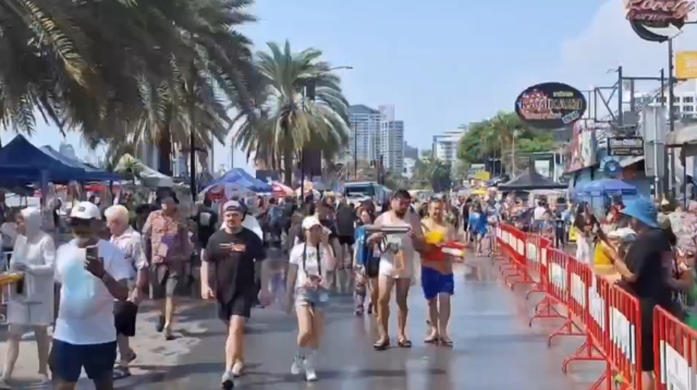 เมื่อวันที่ 19 เมษายน 2569 ซึ่งเป็นวันไหลของเมืองพัทยา จังหวัดชลบุรี บรรยากาศการเล่นน้ำสงกรานต์เป็นไปอย่างคึกคัก โดยมีนักท่องเที่ยวทั้งชาวไทยและต่างชาติเดินทางเข้าพื้นที่อย่างต่อเนื่องตั้งแต่ช่วงเช้า ส่งผลให้ถนนสายหลัก อาทิ ถนนสุขุมวิท พัทยาใต้ พัทยากลาง และพัทยาเหนือ มีปริมาณรถหนาแน่น ขณะที่ร้านค้าและสถานประกอบการต่างร่วมกิจกรรมสาดน้ำสร้างสีสันตลอดแนวเมือง