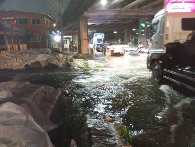 เจ้าหน้าที่เร่งนำกระสอบทรายเข้าปิดกั้นจุดน้ำทะลัก พร้อมประสานสำนักการระบายน้ำ เสริมแนวป้องกันในจุดเสี่ยง เพื่อสกัดไม่ให้น้ำขยายวงกว้างไปยังพื้นที่โดยรอบ
