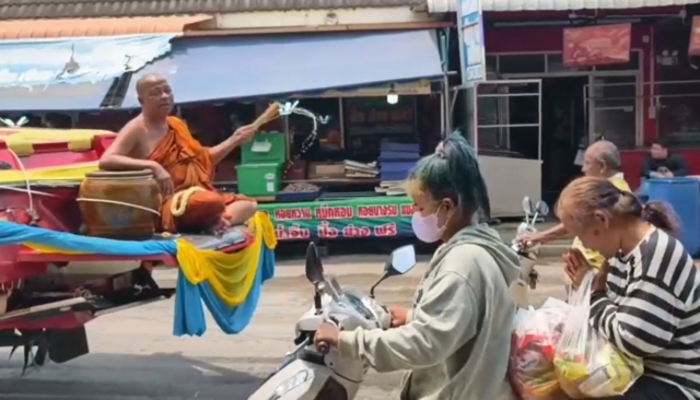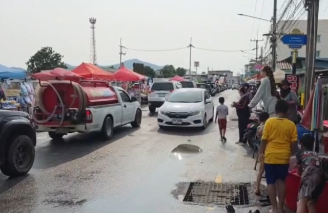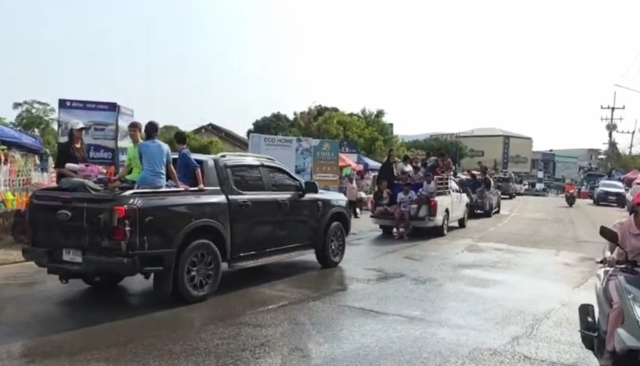 ขณะเดียวกัน ตลอดแนวถนนภายในชุมชน มีประชาชนและนักท่องเที่ยว ทั้งวัยรุ่นและครอบครัว ออกมาเล่นน้ำสงกรานต์กันอย่างสนุกสนาน บางส่วนขับขี่รถจักรยานยนต์ และรถกระบะบรรทุกถังน้ำออกเล่นน้ำ ส่งผลให้การจราจรติดขัดเป็นระยะทางยาว