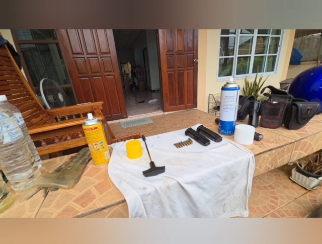 ขณะเดียวกัน พ.ต.อ.ธนชิต สุขพัฒนานรากุล ผกก.สภ.เมืองนครพนม หลังได้รับรายงานจากผู้ใต้บังคับบัญชา จึงเดินทางไปยังบ้านเลขที่ 39/15 ซอย 2 หมู่บ้านจัดสรรแห่งหนึ่ง ที่อยู่ริมถนนบายพาสช่วงบ้านท่าควาย-บ้านน้อยหนองเค็ม พื้นที่ ต.หนองแสง อ.เมืองนครพนม ซึ่งเป็นบ้านของดาบตำรวจพิษณุ ทาระวัฒน์ หรือ ดาบนุ อายุ 45 ปี ผู้เสียชีวิต ตรวจสอบพบรอยเลือดหยดเป็นทางจากหน้าระเบียงมาจนถึงถนนของหมู่บ้าน ส่วนบนที่นั่งหน้าบ้าน พบอุปกรณ์สำหรับล้างอาวุธปืน พร้อมแม็กกาซีนมีกระสุนเต็ม ส่วนที่พื้นพบอาวุธปืน SIG Sauer (ซิกซาวเออร์) ขนาด 9 มม.ตกอยู่ จึงกันพื้นที่ทั้งหมดรอเจ้าหน้าที่พิสูจน์หลักฐานนครพนม (พฐ.ฯ) ตรวจสอบอย่างละเอียด
