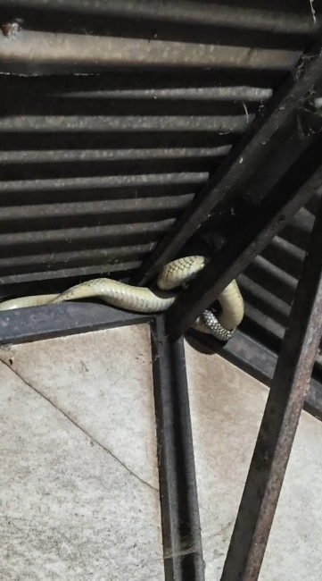 เมื่อไปถึงพบงูจงอางขนาดใหญ่ ความยาวประมาณ 3.5 เมตร ลักษณะสีเผือกหายาก ขดตัวอยู่บริเวณใต้คานหลังคาบ้าน สร้างความแตกตื่นให้กับคนในบ้านและชาวบ้านใกล้เคียงอย่างมาก โดยเฉพาะสีของงูที่ผิดปกติ ทำให้หลายคนเชื่อว่าเป็นงูมงคล