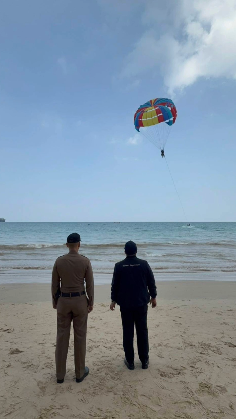 ความคืบหน้าล่าสุด เมื่อวันที่ 22 เม.ย. 2569 เวลา 10.00 น. พ.ต.อ.อนุรักษ์ ปริญญาสถิรกุล ผู้กำกับการสถานีตำรวจภูธรกมลา พร้อมด้วย ร.ต.อ.กิตติศักดิ์ ชายสุทธิ์ รองสารวัตรป้องกันปราบปราม สภ.กมลา ร่วมกับตำรวจน้ำ เจ้าท่าจังหวัดภูเก็ต และผู้ประกอบการเรือลากจูงในพื้นที่ตำบลกมลา ลงพื้นที่ตรวจสอบผู้ประกอบการเรือลากร่มพาราเซลอย่างละเอียด