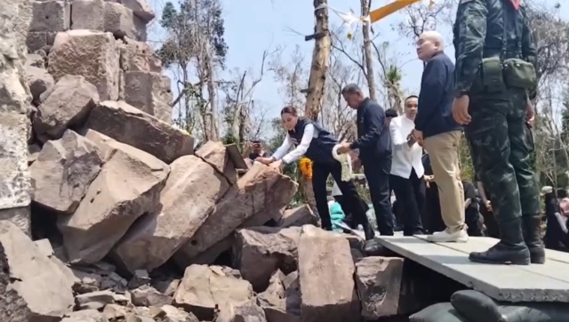 ระหว่างที่ชาวบ้านหลายที่มารวมร่วมกิจกรรม และหลังจากที่บวงสรวงเสร็จ อากาศร้านต่างคนต่างหาที่หลบแดด เนื่องจากด้านบนปราสาทอากาศร้อนมาก ไม่มีที่หลบแดน เพราะต้นไม้ได้แตกหักจากการสู้รบ ได้เหลือบไปเห็นชาวบ้านกลุ่มหนึ่ง ได้หาที่หลบร้อนโดยเข้าไปหลบในป้อมทหารเขมร สังเกตเห็นเชือกสีแดงที่เจ้าหน้าที่ขึงไว้ แต่ก็ยังพากันเข้าไปหลบอาจเกิดอันตราย เพราะบางพื้นที่ยังไม่ได้มีการเคลียร์ 100% อาจมองว่าไม่เคารพกฎกติกาที่เจ้าหน้าที่ได้แจ้งไว้ว่าห้ามออกจากเส้นทาง โดยจุดฐานดังกล่าว เป็นบังเกอร์เขมรที่สร้างไว้ใกล้พระพุทธรูปองค์ใหญ่ข้างล่างบันไดเหล็กทางขึ้น เนิน350