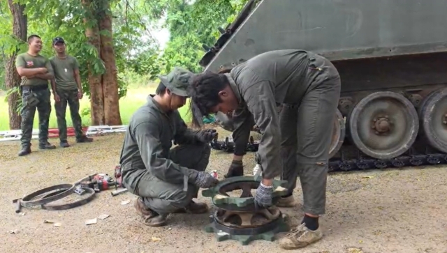 ล่าสุด ผู้สื่อข่าวได้ลงพื้นที่บริเวณ บ้านหนองจาน ต.โนนหมากมุ่น อ.โคกสูง จ.สระแก้ว ซึ่งเป็นหนึ่งในพื้นที่ยุทธศาสตร์สำคัญตามแนวชายแดน พบเจ้าหน้าที่ทหาร พร้อมทีมช่างผู้เชี่ยวชาญด้านซ่อมบำรุงยานเกราะจากภาคเอกชน หรือที่รู้จักกันในชื่อ “เจ๊มาดารถถัง” กำลังดำเนินการซ่อมบำรุงรถถัง และยานเกราะของหน่วยทหารอย่างเร่งด่วน