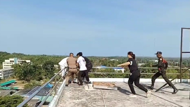 วันที่ 24 เม.ย. 69 ผู้สื่อข่าวรายงานว่า นาย ดำรง ฉิมทับ นายอำเภอตะกั่วป่า พร้อมด้วย นพ.สมพร สหจารุพัฒน์ ผอ.โรงพยาบาลตะกั่วป่า เจ้าหน้าที่ตำรวจ สภ.ตะกั่วป่า และหน่วยกู้ภัยในพื้นที่ ได้เข้าร่วมระงับเหตุและให้การช่วยเหลือ น.ส.อ้อม (นามสมมติ)อายุ 42 ปี เข้ามารักษาตัวที่โรงพยาบาลเมื่อคืนที่ผ่านมา และเกิดอาการเครียดและพยายามจะกระโดดจากระเบียงดาดฟ้าตึกชั้น 6 ของอาคารผู้ป่วย