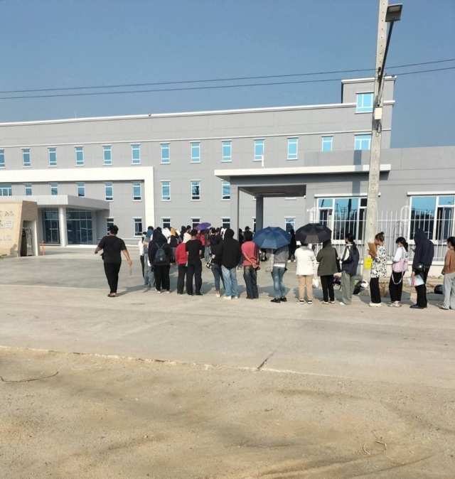 ต่อมาวันที่ 27 เม.ย. 69 ผู้สื่อข่าวเดินทางไปยังบริษัท พบกับกลุ่มพนักงานทั้งหญิง และชายกำลังรอคิวกรอกใบสมัครงาน อยู่บริเวณหน้าบริษัทดังกล่าว