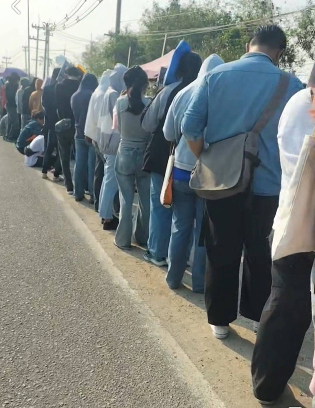 พร้อมกับรูปภาพของหนุ่มสาวชาวแรงงานที่กำลังต่อแถวรอสมัครงาน มีทั้งหมวกกันน็อกวางจองคิวเรียงรายยาว และท้ายแถวการต่อคิวยาวกว่า 1 กิโลเมตร ทำเอาชาวโซเชียลเข้ามาแห่ให้กำลังใจ และขอได้งานที่รอคิวสมัครในครั้งนี้จำนวนมาก