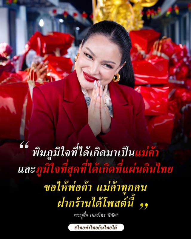 วันที่ 29 เม.ย. 69 ผู้สื่อข่าวรายงานว่า หลังจาก 3 ชั่วโมง 49 นาที "พิมรี่พาย" ได้โพสต์ข้อความลงในเฟซบุ๊กเพจ “Pimrypie – พิมรี่พาย” โพสต์ภาพของพิมรี่พาย รอยยิ้มยกมือไหว้ และแคปชั่น “พิมภูมิใจที่ได้เกิดมาเป็นแม่ค้า และภูมิใจที่สุดที่ได้เกิดที่แผ่นดินไทย ขอให้พ่อค้า แม่ค้าทุกคน ฝากร้านใต้โพสต์นี้" พร้อมข้อความ ระบุว่า “ไทยทำไทยกินไทยได้ #ทุเรียนใกล้ฉัน”