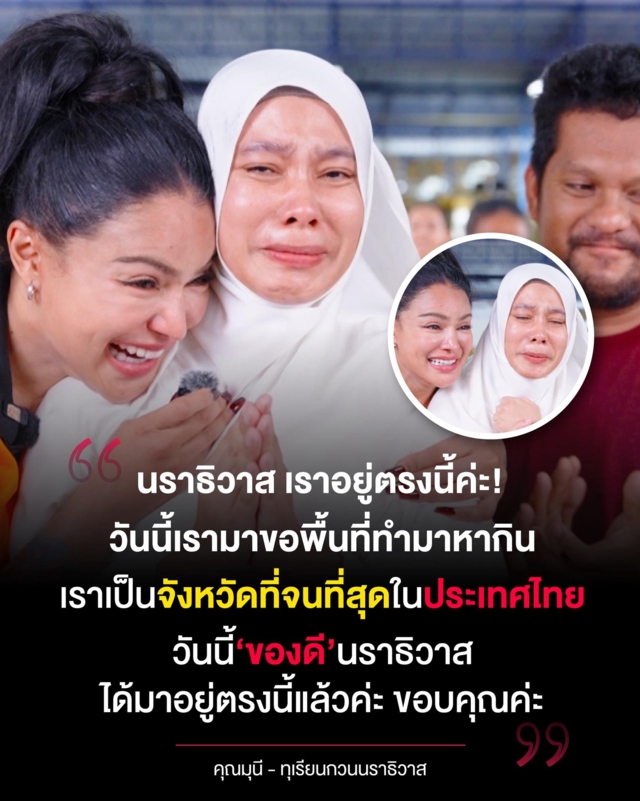 จากนั้นโพสต์ข้อความอีกว่า “คุณมุนี ทุเรียนกวนจาก เจาะไอร้อง นราธิวาส หนูขับรถมาเกือบ 16 ชั่วโมง จังหวัดนราธิวาสเป็นจังหวัดที่จนที่สุดในประเทศ เรามาขอพื้นที่ทำมาหากิน แต่วันนี้เราได้มามีพื้นที่ทำมาหากินได้มายืนอยู่ตรงนี้แล้ว ของดีนราธิวาสอยู่ในมือพิมรี่พายแล้วค่ะ ขอบคุณจริงๆ ค่ะ”