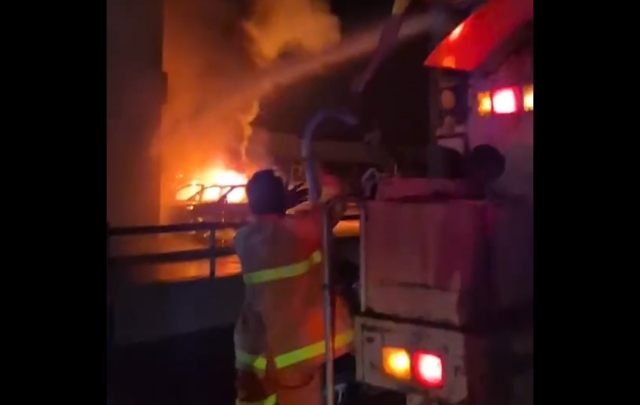 ที่เกิดเหตุบริเวณลานจอดรถของบริษัท พบรถกระบะแบบสี่ประตู จำนวน 2 คัน ไม่ทราบหมายเลขทะเบียน จอดอยู่ติดกัน ถูกเพลิงลุกไหม้จนเผาเกรียม เจ้าหน้าที่ต้องเร่งฉีดน้ำสกัดเปลวเพลิง ใช้เวลาประมาณ 30 นาที จึงสามารถควบคุมเพลิงไว้ได้ เบื้องต้นพบว่ารถทั้งสองคันได้รับความเสียหายถูกไฟไหม้วอดทั้งหมด