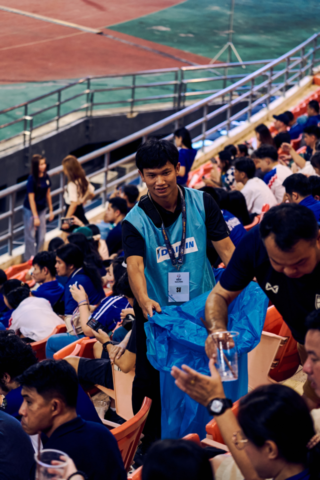 แฟนบอลจำนวนมากได้สมัครใจมาเป็น “จิตอาสามือกาวทีมชาติ” ร่วมเก็บขยะพลาสติกทั่วสนามราชมังคลากีฬาสถานอย่างจริงจัง ไม่เพียงช่วยสร้างภาพลักษณ์ที่ดีให้กับวงการฟุตบอลไทย แต่ยังปลูกฝังวัฒนธรรมการเชียร์ที่สะอาด เป็นระเบียบ และใส่ใจสังคม