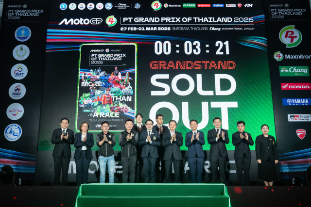 รัฐบาลไทย นำโดย การกีฬาแห่งประเทศไทย กระทรวงการท่องเที่ยวและกีฬา แถลงข่าวความพร้อมการเป็นเจ้าภาพจัดการแข่งขัน "โมโตจีพี" สนามประเทศไทย ประจำปี 2569 ซึ่งได้รับเกียรติสูงสุด ขึ้นแท่นสนามเปิดฤดูกาล เป็นปีที่ 2 ติดต่อกัน ตอกย้ำก้าวสำคัญสู่ปีที่ 7 ที่แข็งแกร่งของไทยบนแผนที่มอเตอร์สปอร์ตโลก พร้อมเดินหน้า สานต่อความสำเร็จ ดันไทยสู่ “ฮับมอเตอร์สปอร์ตภูมิภาค” และสร้างต้นแบบเมืองกีฬาอาเซียน จุดพลุคอนเซ็ปต์ More Than a Race จัดใหญ่-สนุกขึ้น ตั้งเป้าเป็นสนามแข่งที่ดีที่สุดและน่าจดจำที่สุดในปฏิทิน MotoGP ลุ้นสร้างสถิติใหม่ผู้ชมสูงสุดทำลายสถิติเดิม พร้อมเปิดจำหน่ายบัตรวันแรก กระแสตอบรับดีเยี่ยม ที่นั่งแกรนด์สแตนด์ Sold Out ด้วยเวลา 3.21 นาที