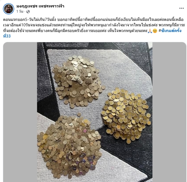 โดยล่าสุด โค้ชเป้า หรือ จสอ.พงษ์พันธ์ นวลแก หนึ่งในสต๊าฟฟ์โค้ชทีมมวยไทยซีเกมส์ ออกมาทวงถามเงินเบี้ยเลี้ยงอีกครั้งหลังรอมานานกว่า 3 เดือน โดนโพสต์ภาพกองเหรียญคาดว่าจะมาจากเงินในกระปุกออมเงิน พร้อมข้อความว่า