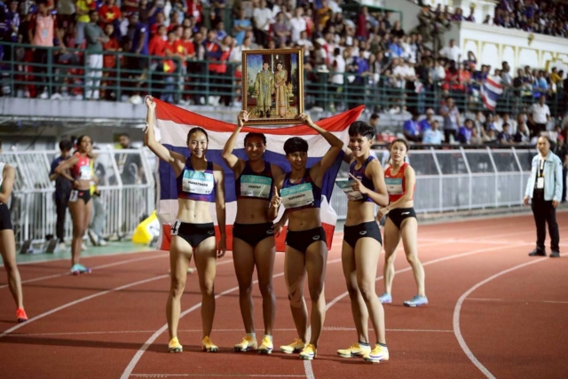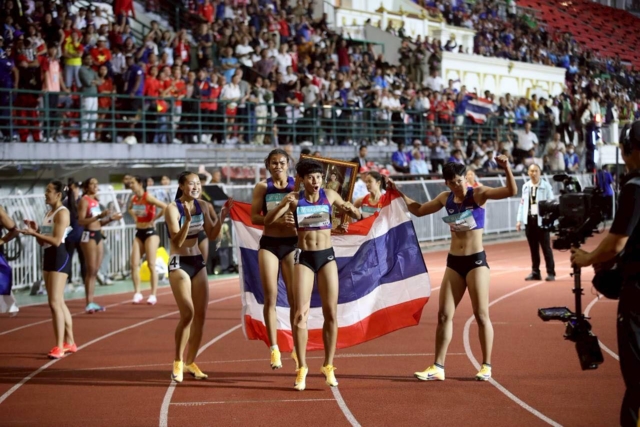 สะใจกองเชียร์! สาวไทยปาดทอง วิ่งผลัด 4x100 เมตร ซีเกมส์ แซงเข้าป้ายช่วงสุดท้ายแบบฉิวเฉียด