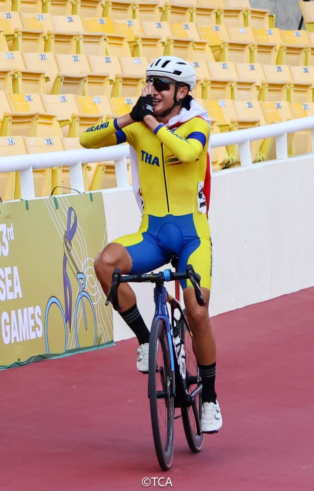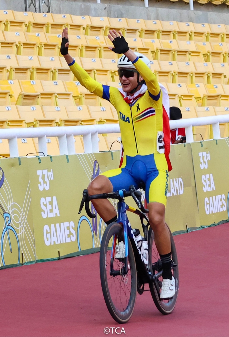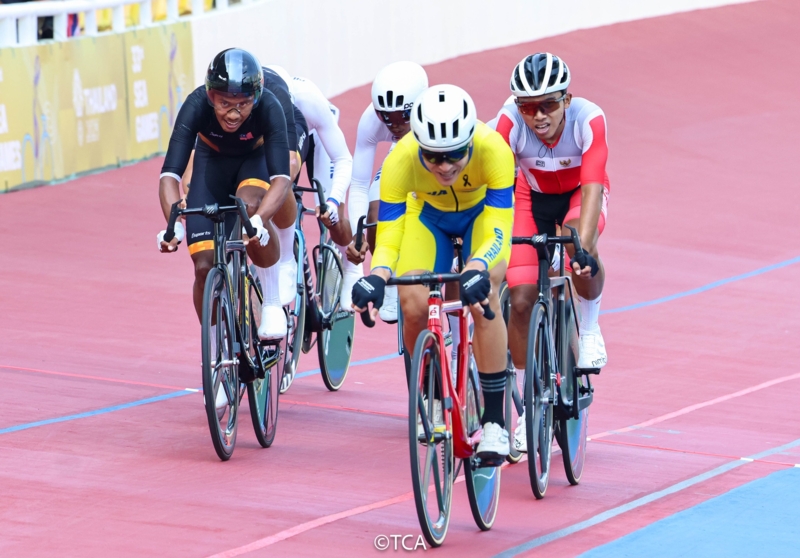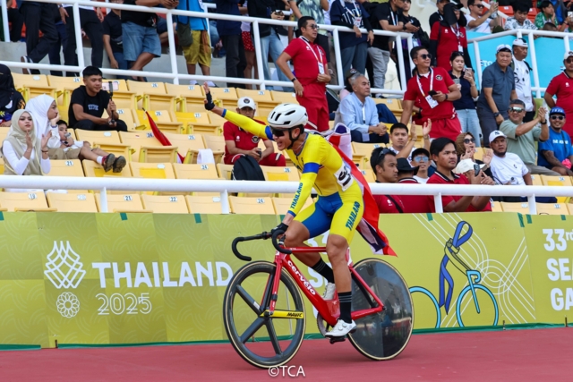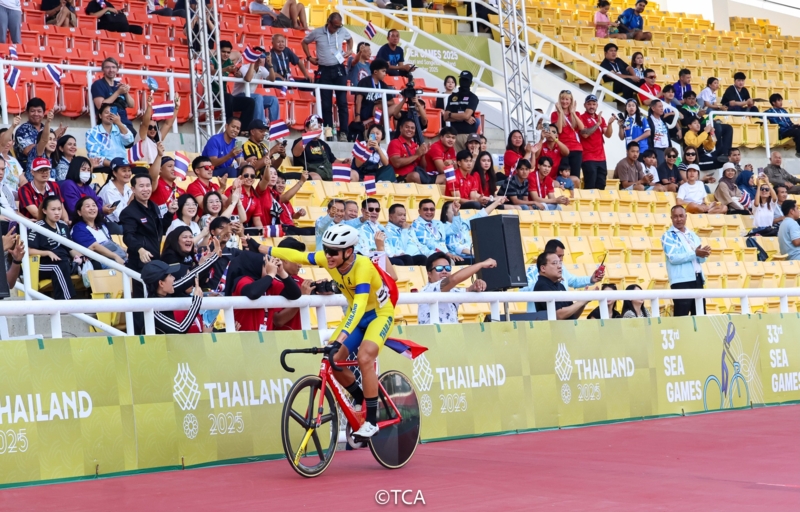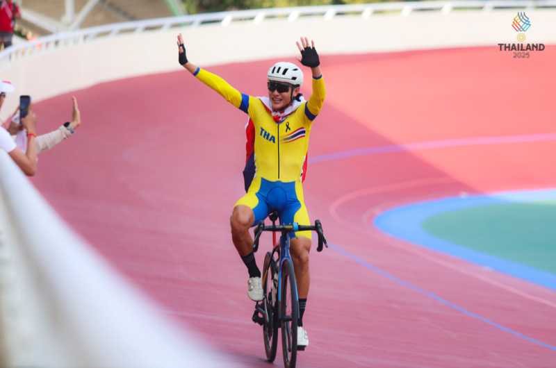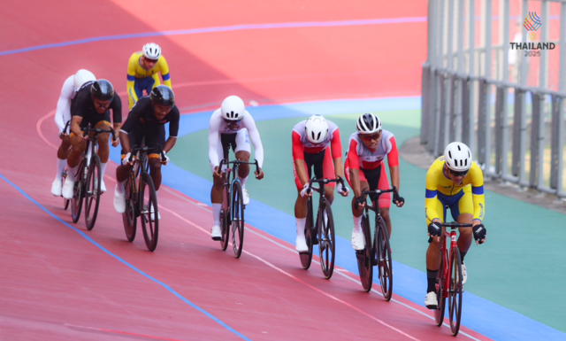 ร.ต.อ.ธุรกิจ บุญรัตนธนากร นักปั่นทีมชาติไทย ปั่นสู้กับคู่แข่ง ก่อนคว้าเหรียญทอง จากรายการพอยต์เรซชาย และเป็นเหรียญที่ 10 ของทัพจักรยานไทย เกินเป้าหมายที่ตั้งไว้ สรุปทีมจักรยานได้ 10 ทอง กับ 7 เงิน และ 3 ทองแดง ในการแข่งขันจักรยานประเภทลู่ กีฬาซีเกมส์ ครั้งที่ 33 ที่เวลโลโดรม การกีฬาแห่งประเทศไทย หัวหมาก เมื่อวันที่ 19 ธ.ค.68