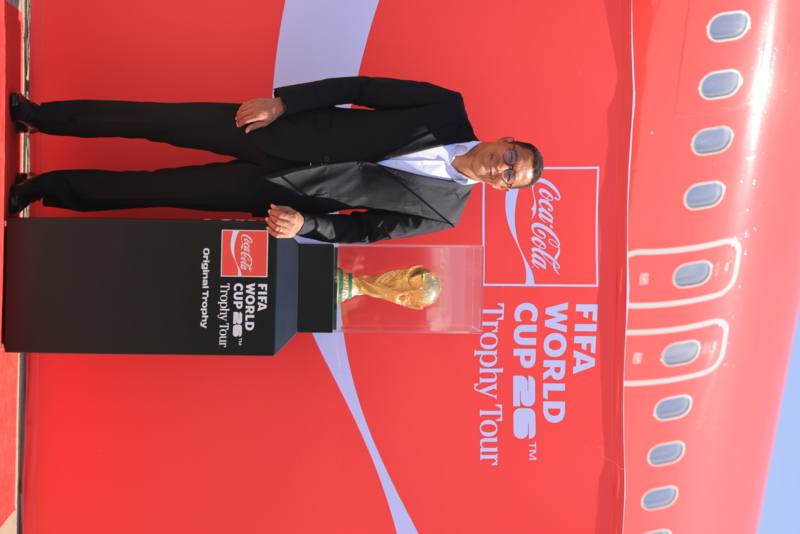 พิธีต้อนรับถ้วยฟุตบอลโลกได้รับเกียรติจาก เซลแมน คาเรกา ประธานภูมิภาคอาเซียนและแปซิฟิกตอนใต้ เดอะ โคคา-โคล่า คัมปะนี และ จิลแบร์โต้ ซิลวา ตำนานนักเตะฟุตบอลโลกจากบราซิล ผู้เคยคว้าแชมป์ฟุตบอลโลกปี 2002 ซึ่งมาร่วมต้อนรับและถ่ายภาพกับถ้วย FIFA World Cup Trophy ของจริง ซึ่งทำจากทองคำ 18 กะรัต