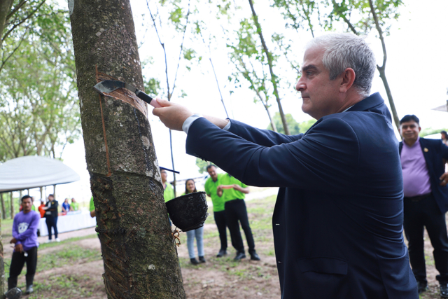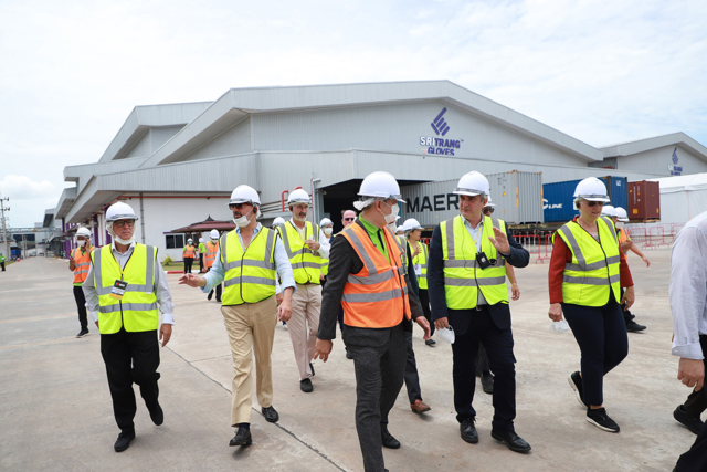 ภายในงานนำโดย นายวีรสิทธิ์ สินเจริญกุล CEO of Sri Trang Group และ นางสาวจริญญา จิโรจน์กุล กรรมการผู้จัดการใหญ่ STGT ร่วมกับคณะผู้บริหารระดับสูงและทีมงานผู้เชี่ยวชาญ ให้การต้อนรับคณะทูตและสื่อมวลชนอย่างอบอุ่น พร้อมนำเสนอศักยภาพองค์กรในหลากหลายมิติ อาทิ ประวัติความเป็นมา จุดแข็งของห่วงโซ่อุตสาหกรรมยางพาราแบบครบวงจร ระบบตรวจสอบย้อนกลับ (Traceability) และการดำเนินงานด้านสิ่งแวดล้อม สังคม และธรรมาภิบาล ภายใต้แนวคิด “Clean World Clean Gloves” (CWCG) หรือ “ถุงมือสะอาด โลกสะอาด” อย่างยั่งยืน จากนั้นคณะผู้แทนได้เยี่ยมชมโซนต่างๆ อาทิ ตัวอย่างผลิตภัณฑ์ กระบวนการผลิตถุงมือที่ได้มาตรฐานระดับโลกด้วยนวัตกรรมและเทคโนโลยี AI ที่ใส่ใจสิ่งแวดล้อม และการสาธิตกรีดยางพารา