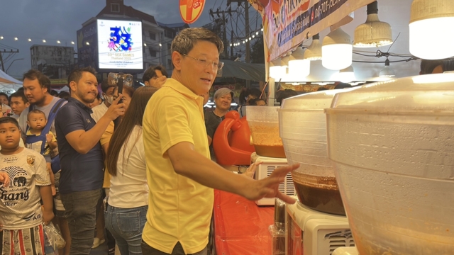 ระหว่างการเดินเยี่ยมชม นายสยามได้กล่าวทักทายพ่อค้าแม่ค้าและประชาชนอย่างเป็นกันเอง พร้อมให้กำลังใจผู้ประกอบการที่มาร่วมออกบูธในปีนี้