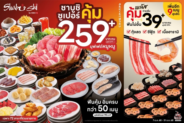 พร้อมให้บริการแล้วกว่า 72 สาขาทั่วประเทศ ที่ ชาบูชิ สาขาในไฮเปอร์มาร์เก็ต ครอบคลุมทำเลหลัก เช่น บิ๊กซี, โลตัส, และคอมมูนิตี้มอลล์ต่าง ๆ (ดูสาขาที่ร่วมรายการ คลิก https://oishifood.com/page/shabushi-buffet259) ตั้งแต่ 7 ตุลาคม 2568 – 31 ธันวาคม 2568 เพื่อกระตุ้นกำลังซื้อและสร้างความคึกคักให้ตลาดร้านอาหารช่วงปลายปี