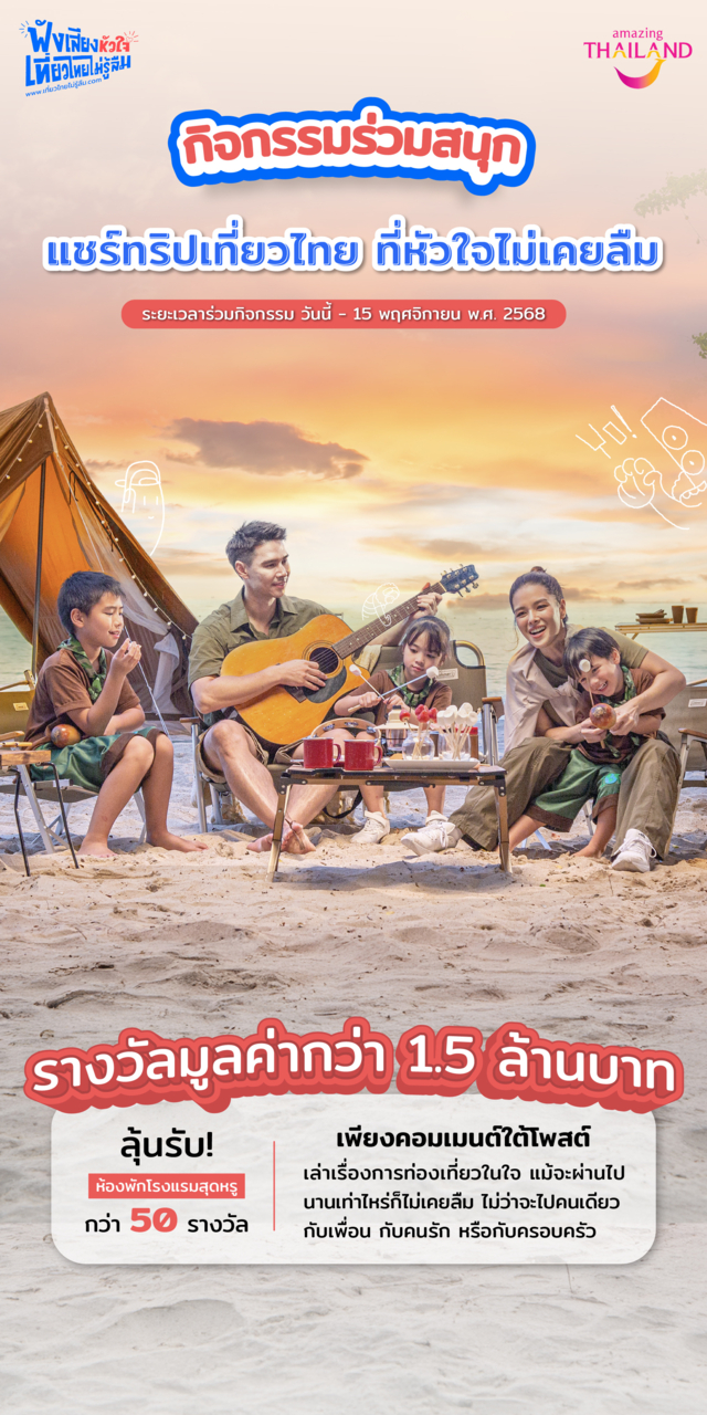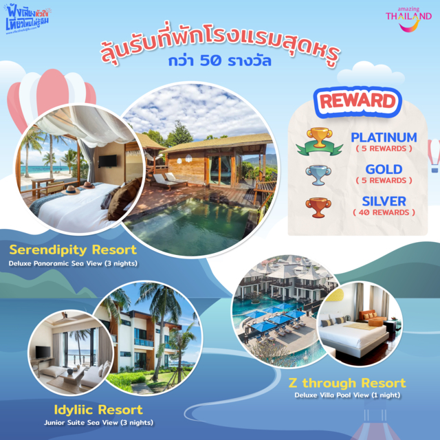 การท่องเที่ยวแห่งประเทศไทย (ททท.) ชวนคุณร่วมสนุก ลุ้นรับที่พักสุดหรูทั่วไทย