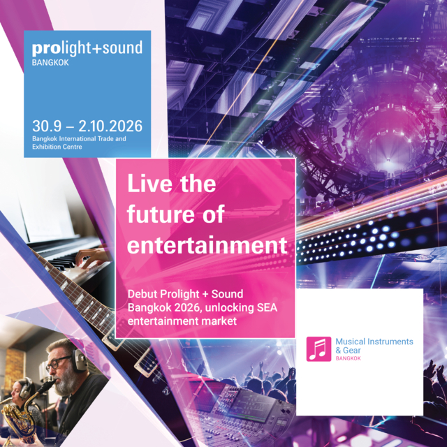 Messe Frankfurt Hong Kong ร่วมกับ บริษัท วีเอ็นยู เอเชีย แปซิฟิค จำกัด ประกาศเปิดตัวงาน “โปร ไลท์ แอนด์ ซาวด์ แบงค็อก” (Prolight + Sound Bangkok) หรือ PLSB งานแสดงสินค้าและเทคโนโลยีระดับภูมิภาคด้านความบันเทิงและระบบภาพ-เสียงมืออาชีพ (pro AV) ครั้งแรกในประเทศไทย โดยมีกำหนดจัดขึ้นระหว่างวันที่ 30 กันยายน – 2 ตุลาคม 2569 ณ ศูนย์นิทรรศการและการประชุมไบเทค (BITEC) กรุงเทพฯ