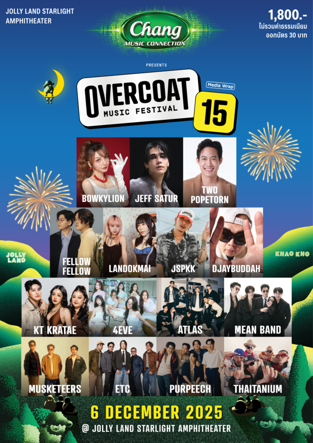 เทศกาลดนตรีฤดูหนาวสุดชิลล์ที่ทุกคนรอคอยจะกลับมาอีกครั้ง! กับ Overcoat Music Festival 2025 ครั้งที่ 15 พร้อมพาทุกคนออกเดินทางสู่ ทริปประจำปีของชาวแกะ ในวันเสาร์ที่ 6 ธันวาคม 2568 ณ Jolly Land Starlight Amphitheater เขาค้อ เพชรบูรณ์