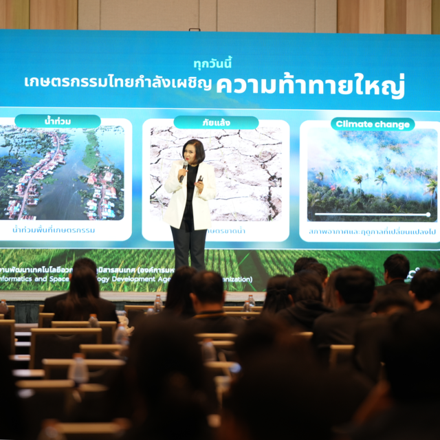 เมื่อวันที่ 3 พฤศจิกายน 2568 ณ โรงแรมอัศวินแกรนด์ คอนเวนชั่น กรุงเทพฯ สำนักงานพัฒนาเทคโนโลยีอวกาศและภูมิสารสนเทศ (องค์การมหาชน) หรือ GISTDA ร่วมกับ สำนักงานเศรษฐกิจการเกษตร, กรมการข้าว, กรมส่งเสริมการเกษตร, กรมชลประทาน, กรมการเปลี่ยนแปลงสภาพภูมิอากาศและสิ่งแวดล้อม, กรมอุตุนิยมวิทยา และ ศูนย์วิจัยการเปลี่ยนแปลงภูมิอากาศระดับภูมิภาคและพลังงานทดแทน หรือ RU – CORE ได้เปิดตัวอย่างเป็นทางการของระบบ Dashboard ภายใต้โครงการ “AIP for Climate Resilient Agriculture” เครื่องมือดิจิทัลเชิงนโยบาย เพื่อช่วยให้เกษตรไทยรับมือกับวิกฤตภูมิอากาศได้อย่างมีประสิทธิภาพ