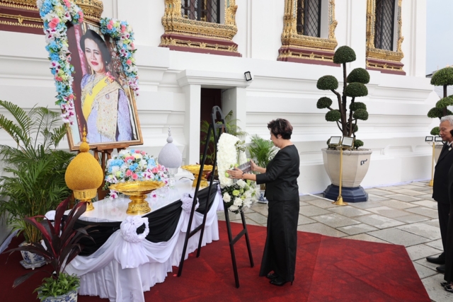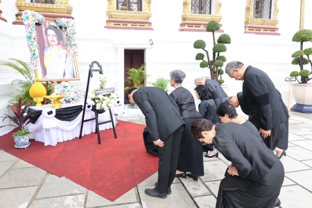 คุณลักขณา นะวิโรจน์ พร้อมด้วย ดร.วิชาญ อิงศรีสว่าง, ดร.สุรัตน์ บัวเลิศ, คุณพิสิฐ เสือสมิง, คุณสุพัตรา จิราธิวัฒน์, คุณประเสริฐ สลิลอำไพ, คุณจินตนา ศุขวัฒนะกุล คณะนักศึกษาผู้อบรมหลักสูตรผู้นำการพัฒนาอย่างยั่งยืน ที่จัดทำขึ้นโดยมูลนิธิชัยพัฒนา เข้ากราบถวายบังคมพระบรมศพ สมเด็จพระนางเจ้าสิริกิติ์ พระบรมราชินีนาถ พระบรมราชชนนีพันปีหลวง ณ พระที่นั่งดุสิตมหาปราสาท ในพระบรมมหาราชวัง ด้วยน้อมสำนึกในพระมหากรุณาธิคุณอันหาที่สุดมิได้ ที่พระองค์มีต่อพสกนิกรชาวไทย
