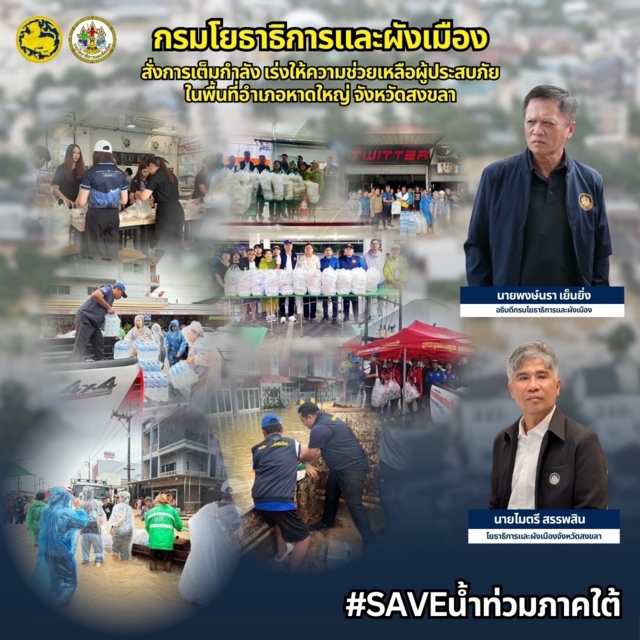 นายพงษ์นรา เย็นยิ่ง อธิบดีกรมโยธาธิการและผังเมือง ได้สั่งการโยธาธิการและผังเมืองจังหวัดสงขลา ให้ระดมการสนับสนุนภารกิจจังหวัดอย่างเต็มสรรพกำลัง เพื่อเร่งให้ความช่วยเหลือและบรรเทาความเดือดร้อนของพี่น้องประชาชนในพื้นที่จังหวัดสงขลา และอำเภอหาดใหญ่ ที่ได้รับผลกระทบจากอุทกภัย โดยเน้นย้ำถึงการใช้กำลังพล เครื่องมือ และเครื่องจักรกลอย่างเต็มประสิทธิภาพ พร้อมกันนี้ ได้ส่งกำลังใจและความห่วงใยไปยังเจ้าหน้าที่สำนักงานโยธาธิการและผังเมืองจังหวัดสงขลา ที่กำลังปฏิบัติภารกิจช่วยเหลือประชาชนในจุดต่างๆ ขอให้ปฏิบัติหน้าที่ด้วยความระมัดระวัง และคำนึงถึงความปลอดภัยสูงสุด