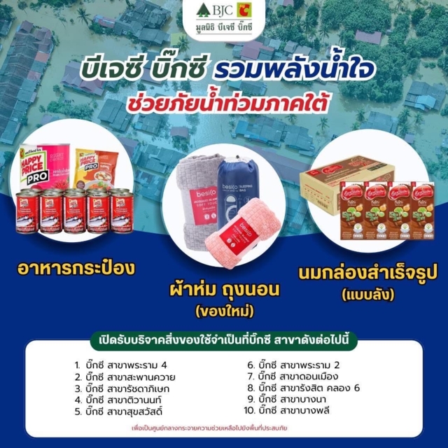 “มูลนิธิ บีเจซี บิ๊กซี” ขอเป็นสื่อกลางเปิดรับบริจาคสิ่งของจำเป็น เพื่อจัดทำถุงยังชีพส่งตรงถึงพื้นที่