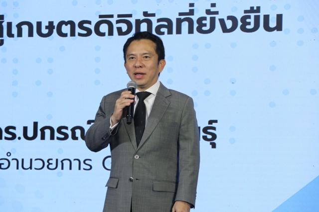 ดร.ปกรณ์ อาภาพันธุ์ ผู้อานวยการ GISTDA กล่าวว่า GISTDA มีเป้าหมายชัดเจนในการผลักดันเกษตรกรไทยสู่เกษตรดิจิทัล โดยใช้ข้อมูลจากดาวเทียมเป็น ดวงตาใหม่” ที่ช่วยมองเห็นข้อมูลสาคัญที่ตาเปล่ามองไม่เห็น ไม่ว่าจะเป็นสุขภาพพืช ความชื้นในดิน ระดับความเสียหายจากศัตรูพืช ไปจนถึงความเสี่ยงด้านสภาพอากาศ ข้อมูลเชิงลึกเหล่านี้มีบทบาทสาคัญต่อการวางแผน รับมือภัยพิบัติ และเพิ่มความแม่นยาในการจัดการแปลงของเกษตรกร เป้าหมายของ GISTDA คือทาให้เกษตรกรทุกคนเข้าถึงข้อมูลที่ถูกต้อง ทันสมัย และต่อเนื่องได้ง่ายจากมือของตัวเอง เพื่อช่วยลดต้นทุน เพิ่มผลผลิต และสร้างความยั่งยืนให้ภาคเกษตรไทยในระยะยาว