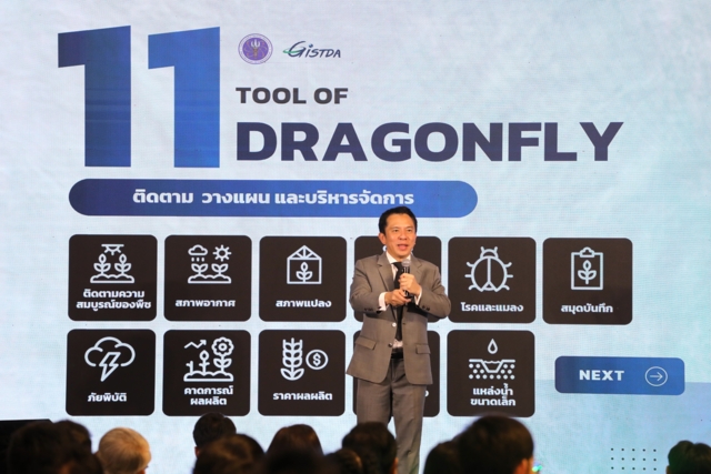 26 พฤศจิกายน 2568 กระทรวงการอุดมศึกษา วิทยาศาสตร์ วิจัย และนวัตกรรม หรือ อว. โดยสานักงานพัฒนาเทคโนโลยีอวกาศและภูมิสารสนเทศ (องค์การมหาชน) หรือ GISTDA เปิดตัวแพลตฟอร์มเกษตรอัจฉริยะ หรือDragonfly ที่นาเทคโนโลยีอวกาศและภูมิสารสนเทศ มาเสิร์ฟถึงมือผู้ใช้งานในระดับบุคคล โดยเฉพาะ “เกษตรกรไทย” ที่ต้องการก้าวผ่านจากการประกอบอาชีพด้วยวิธีการดั้งเดิมไปสู่การเป็น “เกษตรกรยุคใหม่” หรือ “Smart Farmer โดยมี ดร.ปกรณ์ อาภาพันธุ์ ผู้อานวยการ GISTDA ขึ้นกล่าว อนาคตเกษตรดิจิทัลสู่การใช้ประโยชน์จาก Dragonfly อย่างยั่งยืน” รวมถึง S p e cial Talk แลกเปลี่ยนความคิดเห็นจากนักวิชาการผู้เชี่ยวชาญมาก ประสบการณ์ในหัวข้อ “AgriTech & Climate Change Management: นวัตกรรม เพื่ออนาคตของเกษตรกรไทย” โดย นายชิษณุชา บุดดาบุญ อดีตรองอธิบดีกรมการข้าว ดร.ปกรณ์ เพ็ชรประยูร ผู้อานวยการสานักประยุกต์และพัฒนาภูมิสารสนเทศจาก GISTDA และ นางนิติภา วรพันธ์ตระกูล ผู้อานวยการกลุ่มประเมินผลการลดก๊าซเรือนกระจก จากกรมการเปลี่ยนแปลงสภาพภูมิอากาศและสิ่งแวดล้อม ณ สามย่านมิตรทาวน์ กรุงเทพฯ