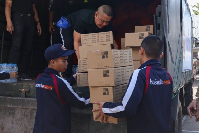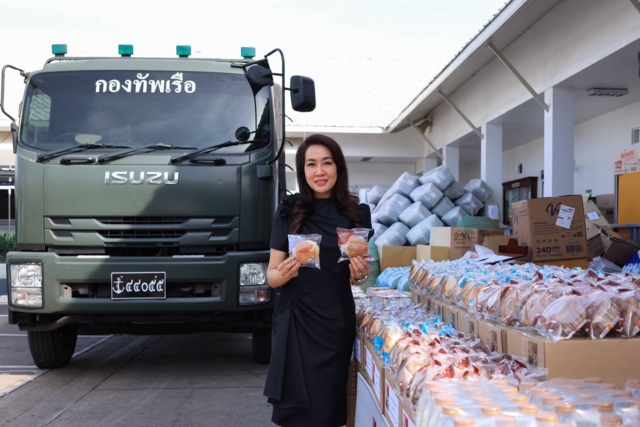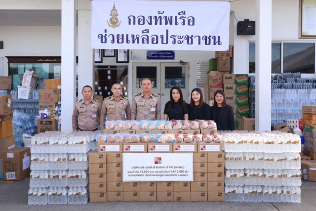 คุณมณีสุดา ศิลาอ่อน ประธานเจ้าหน้าที่สำนักพัฒนาความยั่งยืนและสื่อสารองค์กร บริษัท เอส แอนด์ พี ซินดิเคท จำกัด (มหาชน) มอบน้ำดื่ม จำนวน 18,000 ขวด และผลิตภัณฑ์ขนมปังเดลิโอ S&P จำนวน 5,004 ชิ้น มูลค่ารวม 400,104 บาท เพื่อช่วยบรรเทาความเดือดร้อนของประชาชนผู้ประสบอุทกภัยพื้นที่จังหวัดสงขลา และจังหวัดใกล้เคียง ภายใต้โครงการ ”S&P รวมใจช่วยภัยน้ำท่วม ปี 2568“ โดยมี พลเรือเอก ไพโรจน์ เฟื่องจันทร์ ผู้บัญชาการทหารเรือ ให้เกียรติรับมอบ ณ กองบัญชาการทหารเรือ ระหว่างวันที่ 27-28 พฤศจิกายน 2568