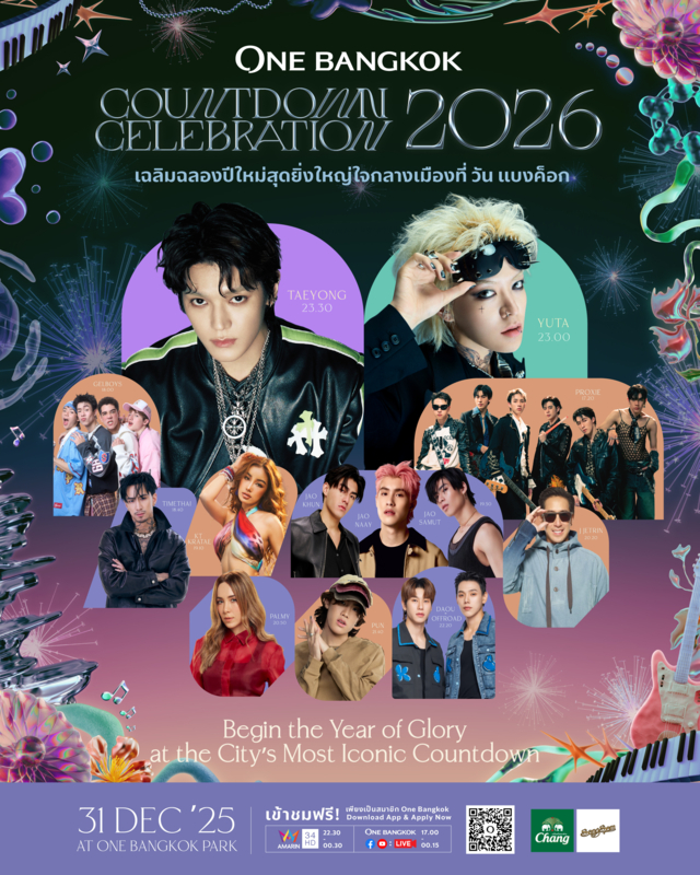 วัน แบงค็อก เตรียมสร้างประสบการณ์เฉลิมฉลองส่งท้ายปีเก่าต้อนรับปีใหม่กับ “One Bangkok Countdown Celebration 2026: The Empire of ONE” งานเคานต์ดาวน์สุดไอคอนิกใจกลางเมือง ก่อนเริ่มต้นศักราชแห่งความยิ่งใหญ่ของ “ปีม้าไฟ” สัญลักษณ์แห่งความมีชีวิตชีวา ความมุ่งมั่น การผจญภัย พร้อมรับกับทุกการเปลี่ยนแปลงที่ไร้ขีดจำกัด ตื่นตาตื่นใจกับเวทีกลาง ณ วัน แบงค็อก ปาร์ค ที่ตระหง่านเป็น "หอคอยแห่งอาณาจักร" พร้อมมอบความสนุกแบบ 360 องศา และพลาดไม่ได้กับการแสดงพิเศษจากสองศิลปินซูเปอร์สตาร์ระดับโลกจากเกาหลีอย่าง TAEYONG และ YUTA พร้อมกองทัพศิลปินไทยอีก 19 คน ที่มาร่วมเนรมิตค่ำคืนแห่งความทรงจำในวันที่ 31 ธันวาคม 2568 และจุดประกายความสุขสู่ปี 2569