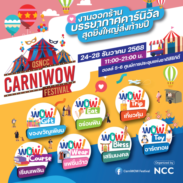 🎡✨ เตรียมตัววาร์ปสู่โลกแห่งความ “ว้าว” ที่ 𝑪𝒂𝒓𝒏𝒊𝑾𝑶𝑾 𝑭𝒆𝒔𝒕𝒊𝒗𝒂𝒍 🎉 เทศกาลสุดปังส่งท้ายปีที่รวม ช็อป-ชิม-ชิลล์-โชค ไว้ครบในงานเดียว! 🛍️