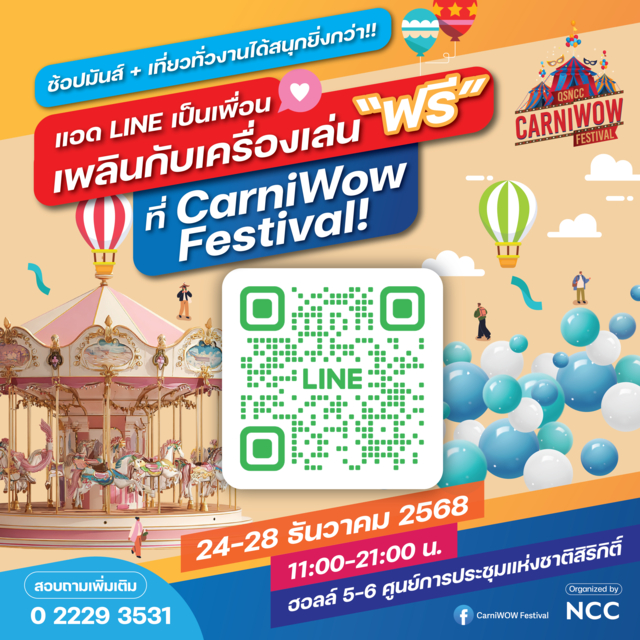 มากินแซ่บ ช้อปมันส์กับสินค้าหลากหลายกว่า 300 ร้านค้า ลดสูงสุด 80% พร้อมโครงการ คนละครึ่งพลัส เพลิดเพลินกับมินิคอนเสิร์ต เปิดดวงรับปีใหม่ และซุ้มเกมชิงของรางวัล สนุกจัดเต็มตลอด 5 วัน…ไม่มาไม่ได้แล้ว! อย่าลืมชวนเพื่อน ครอบครัว หรือคนพิเศษ ให้มา “ว้าว” ให้สุดที่ 𝑪𝒂𝒓𝒏𝒊𝑾𝑶𝑾 𝑭𝒆𝒔𝒕𝒊𝒗𝒂𝒍 ไปด้วยกัน! 🥳