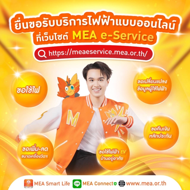 ยื่นขอรับบริการไฟฟ้าแบบออนไลน์ 🌟 ที่เว็บไซต์ MEA e-Service