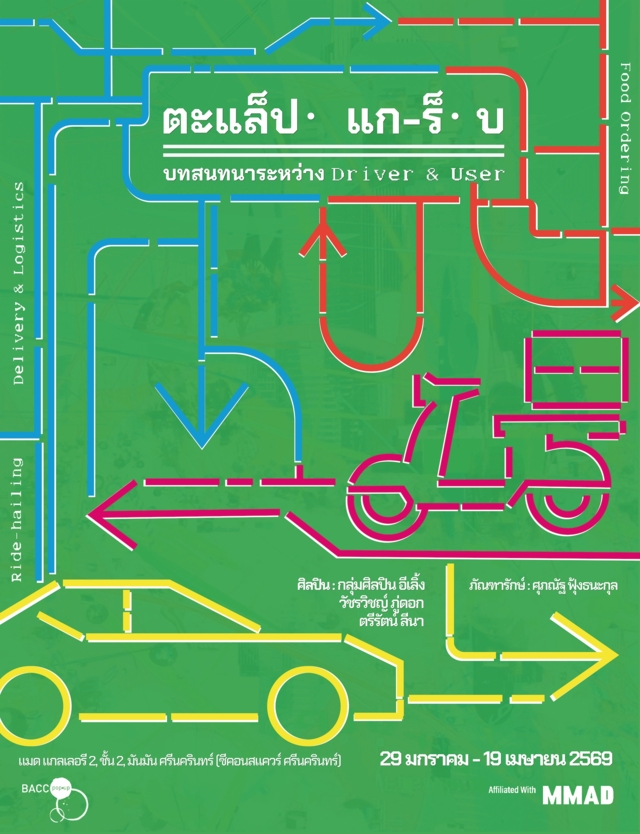 · BACC pop•up กับ นิทรรศการ “ตะแล็ป·แก-ร็·บ” ชวนย้อนมองพัฒนาการของการสื่อสารระยะไกล ตั้งแต่ยุคโทรเลข (Telegraph) ซึ่งทำให้ผู้คนสามารถติดต่อถึงกันได้แม้อยู่ห่างไกล และค่อย ๆ กลายเป็นส่วนหนึ่งของชีวิตประจำวัน ภายใต้บริบทดังกล่าว ดิจิทัลแพลตฟอร์มได้เข้ามาทำหน้าที่เป็นพื้นที่ของบทสนทนารูปแบบใหม่ หนึ่งในนั้นคือแพลตฟอร์มเดลิเวอรีอย่าง Grab ซึ่งเชื่อมโยงผู้ใช้งาน ผู้ประกอบการ และคนขับเข้าไว้ด้วยกันผ่านระบบเดียวกัน บทสนทนาในชีวิตประจำวัน