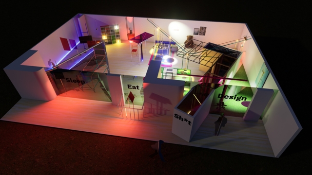 · STUX2 X ArchBU X BEiLAB ภายใต้การนำเสนอของ คณะสถาปัตยกรรมศาสตร์ มหาวิทยาลัยกรุงเทพ กับนิทรรศการ “Sleep • Eat • Sh*t Design” ฉีกหลักการออกแบบระหว่าง “กฏหมายอาคาร” และ “กฎจารีตความเชื่อ” เมื่อบ้านที่ถูกกำกับด้วยกฎหมาย ถูกปรับแก้ด้วยความเชื่อ และถูกทำลายลงอย่างงดงามโดยทั้งสองสิ่ง ไม่ว่าจะเป็น ห้องนอนโปร่งใส ระบบท่อน้ำเหนือห้องครัว ห้องส้วมแคบยาว