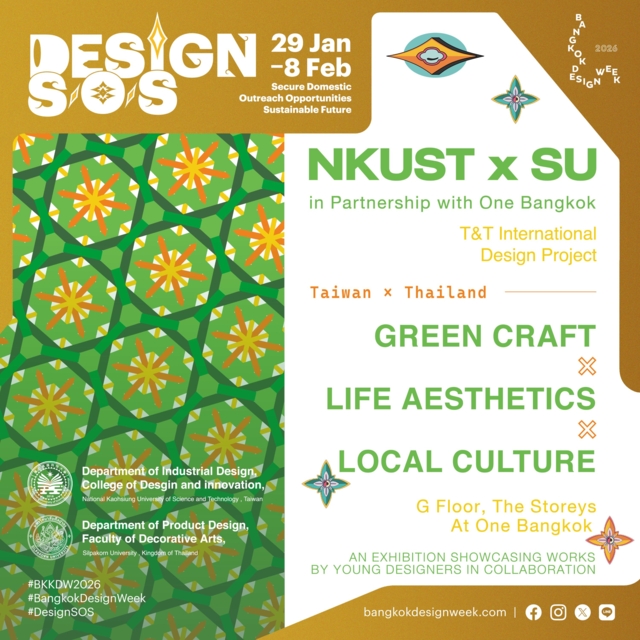 • นิทรรศการผลงานออกแบบนานาชาติ ผลงานจากความร่วมมือระหว่าง มหาวิทยาลัยศิลปากร และ National Kaohsiung University of Science and Technology (NKUST) ไต้หวัน ภายใต้แนวคิด “Green Craft × Life Aesthetics × Local Culture” ณ The Storeys Gallery วัน แบงค็อก