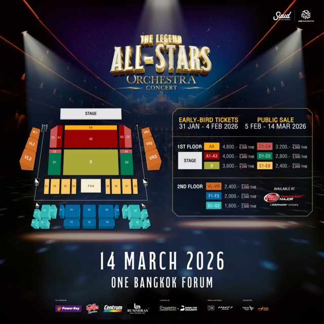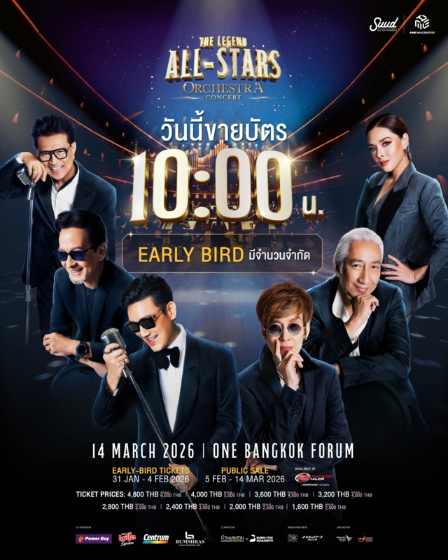 Early Bird ลด 20% วันที่ 31 ม.ค. - 4 ก.พ. นี้เท่านั้น (จำนวนจำกัด) ซื้อบัตรได้ที่ Thaiticketmajor https://cooll.ink/The_Legend_All-Stars_Orchestra/