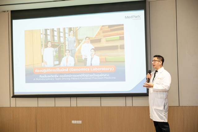 โรงพยาบาลเมดพาร์ค จัดงานแถลงข่าวเปิด ห้องปฏิบัติการจีโนมิกส์ และการให้บริการด้าน เวชศาสตร์จีโนม (Genomic Medicine) อย่างเป็นทางการ เมื่อวันศุกร์ที่ 30 มกราคม 2569 ณ ห้องประชุม The Forum โรงพยาบาลเมดพาร์ค โดยมุ่งยกระดับการดูแลผู้ป่วยด้วยแนวคิด การแพทย์แม่นยำ (Precision Medicine) ผ่านการนำข้อมูลทางพันธุกรรมมาใช้ประกอบการวินิจฉัย การวางแผนการรักษา และการดูแลเชิงป้องกันอย่างเหมาะสมกับผู้ป่วยแต่ละราย