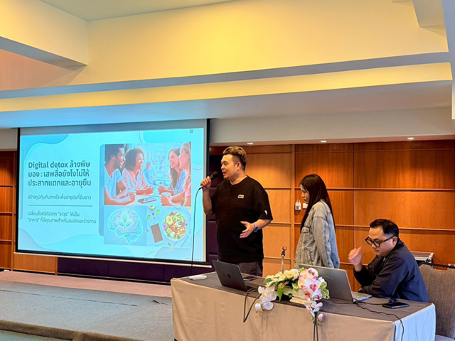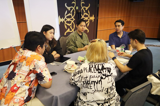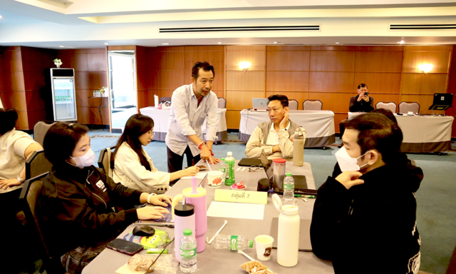 โดยมี ผศ.ดร.เอกพล เธียรถาวร ผู้จัดการหลักสูตรและทีมวิทยากรที่ปรึกษา (Mentor) ประจำกลุ่ม ชี้แจงการจัดทำโครงงานกลุ่มเกี่ยวกับการออกแบบและพัฒนาโครงการสื่อสารด้วย AI (Project Design) และนำเสนอโจทย์ในการจัดทำโครงงานกลุ่ม พร้อมให้คำแนะนำแก่ผู้เข้าอบรม AI4Medie รุ่นที่ 1