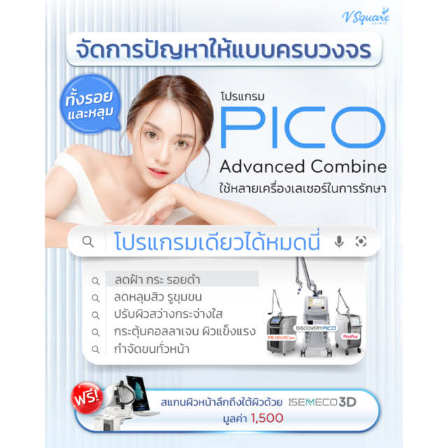Pico Laser ที่ V Square Clinic มีเครื่อง Pico Laser ให้เลือกหลายรุ่น เช่น PicoPlus, PicoSure Pro และ Discovery Pico และยังสามารถวางแผนรักษาร่วมกับเครื่องอื่น ๆ อย่าง Bellalux, Fotona หรือ Sylfirm เพื่อให้เหมาะกับปัญหาผิวของแต่ละคนได้ครับ