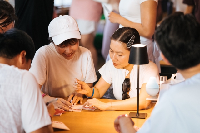 เข้าสู่บรรยากาศของความโรแมนติกแบบอบอุ่นในกิจกรรม Card Talk โดยทีม Grab ’N Grow ที่ชวนทุกคนมานั่งคุยแลกเปลี่ยนมุมในหัวข้อ Wellness, Love & 2026 Success ผ่านการ์ดคำถามเล็ก ๆ ที่ช่วยเปิดบทสนทนาให้คนแปลกหน้าค่อย ๆ ทำความรู้จักกันอย่างเป็นธรรมชาติ จากเรื่องราว ความคิด และมุมมองที่ค่อย ๆ แมตช์กันไป พร้อมเสียงเพลงจากดีเจที่ช่วยเติม mood ให้ค่ำคืนวาเลนไทน์รู้สึกผ่อนคลายและเป็นกันเอง เหมือนได้ฉลองให้มิตรภาพใหม่ ๆไปด้วยกัน ที่ร้าน Pollo Wine Bar (The PARQ Life, ชั้น 1)