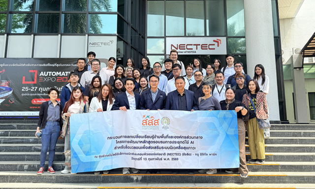 เมื่อวันศุกร์ที่ 13 กุมภาพันธ์ 2569 ที่ผ่านมา นายชวรงค์ ลิมป์ปัทมปาณี ประธานคณะกรรมการหลักสูตร พร้อมด้วย ผศ.ดร.เอกพล เธียรถาวร ผู้จัดการหลักสูตร และ ผศ.ปาจารีย์ ปุรินทวรกุล นักวิชาการ นำคณะผู้เข้ารับการอบรมหลักสูตรอบรมการประยุกต์ใช้ AI สำหรับสื่อมวลชนเพื่อส่งเสริมระบบนิเวศสื่อสุขภาวะ (AI4Media) รุ่นที่ 1 เข้าร่วมกิจกรรมกระบวนการแลกเปลี่ยนเรียนรู้ข้ามพื้นที่และองค์กรส่วนกลาง เพื่อรับฟังการบรรยายสรุปการดำเนินงานและเยี่ยมชมศูนย์เทคโนโลยีอิเล็กทรอนิกส์และคอมพิวเตอร์แห่งชาติ (NECTEC)