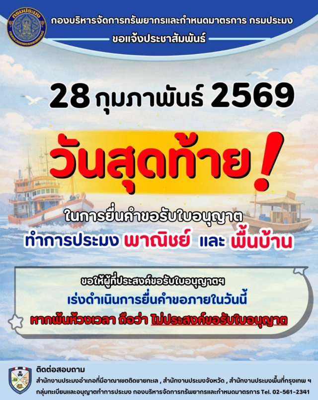 วันสุดท้ายแล้ว🔥สำหรับการยื่นคำขอรับใบอนุญาตทำการประมง พาณิชย์–พื้นบ้าน ⚓