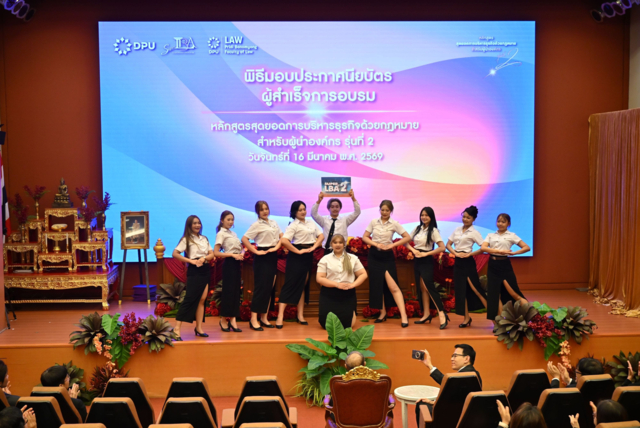 มหาวิทยาลัยธุรกิจบัณฑิตย์ (DPU) โดยคณะนิติศาสตร์ปรีดี พนมยงค์ จัดพิธีมอบประกาศนียบัตรผู้สำเร็จการอบรมหลักสูตรสุดยอดการบริหารธุรกิจด้วยกฎหมายสำหรับผู้นำองค์กร “Super Legal Business Administration” Leadership Program (Super LBA) รุ่นที่ 2 เมื่อวันที่ 16 มีนาคม 2569 โดยได้รับเกียรติจาก ดร.สุเมธ ตันติเวชกุล กรรมการและที่ปรึกษาพิเศษอาวุโสมูลนิธิชัยพัฒนา เป็นประธานในพิธี โดยมี ดร.สุทธิพล ทวีชัยการ คณบดีคณะนิติศาสตร์ปรีดี พนมยงค์ ในฐานะประธานกรรมการหลักสูตร Super LBA รุ่นที่ 2 คณาจารย์และผู้สำเร็จการอบรมหลักสูตรดังกล่าวเข้าร่วมอย่างพร้อมเรียง ณ ห้องประชุม ดร.ไสว สุทธิพิทักษ์ มหาวิทยาลัยธุรกิจบัณฑิตย์